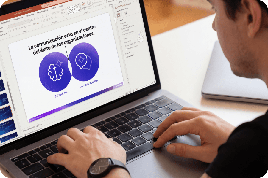 Le enseñamos a tu equipo nuestro método para crear presentaciones que venden, conectan e impactan. Con sesiones prácticas enfocadas a resolver casos reales basados en su contexto y necesidades. Disponible en modalidad presencial, virtual o híbrida.